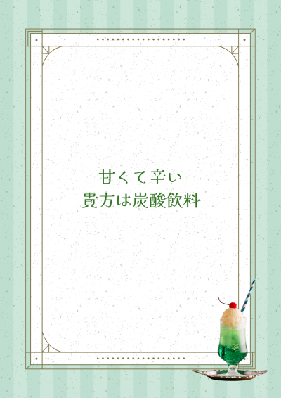 自然と零れた苦笑は、先程までのささくれ立った感情を綺麗に洗い流してくれた。甘い言葉を囁いたかと思えば、突如として突き放すような刺激を与える。矢張り、こいつは炭酸飲料そのものだ。抗い難く、癖になる。