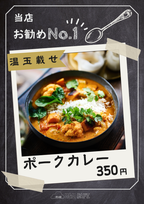 「お待たせしましたー! ポークカレー温玉載せと、ダージリンティーです!」