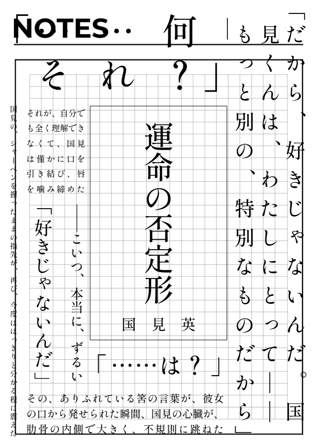 「わたしを好きにならないで。お願い。そうじゃないと、わたしは国見くんのことを、世間で言うところの"好き"にならなくちゃいけなくなるかもしれないから。でも、それじゃ全然足りないんだ。わたしのこの気持ちは、そんな簡単な言葉じゃ収まらないから――だから、わたしは"好きじゃない"ままでいたいの」