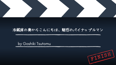 「さあ、食後のデザートには、取って置きの映画を用意してある。タイトルは、確か……『冷蔵庫の奥からこんにちは、魅惑のパイナップルマン』だったかな。B級カルトの傑作と名高い作品だ。きっと、君達の高まった感受性を、更に刺激してくれることだろう」